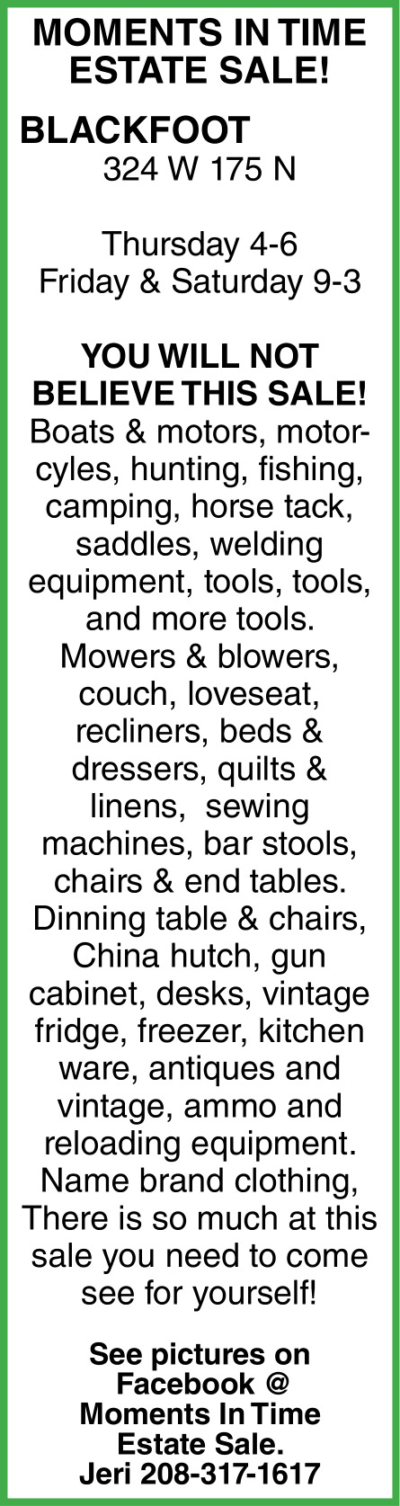 Oct 15, 2025. 324 W 175 N - Blackfoot Ads from Post Register