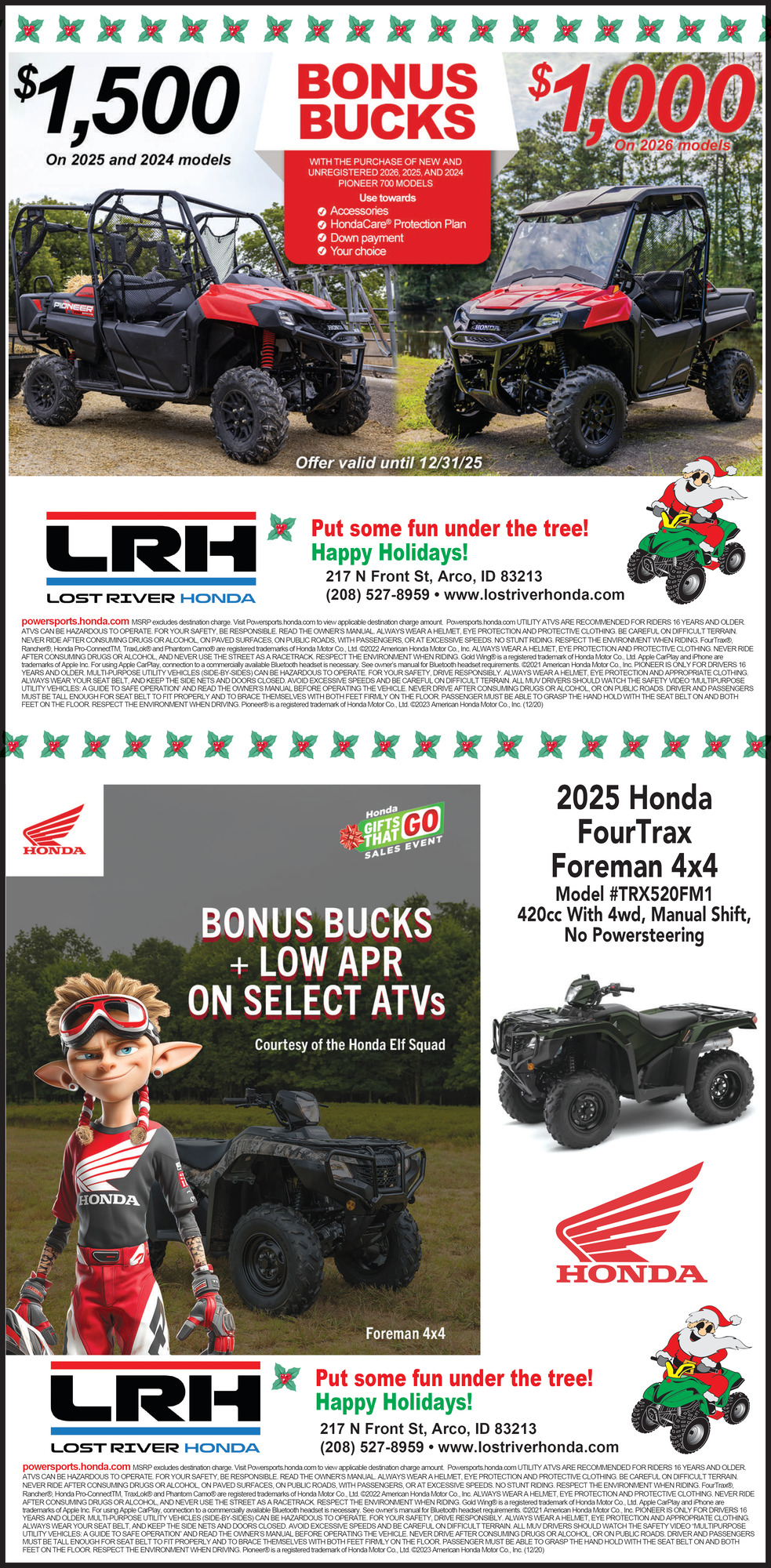 Ads for Lost River Honda in Arco, ID