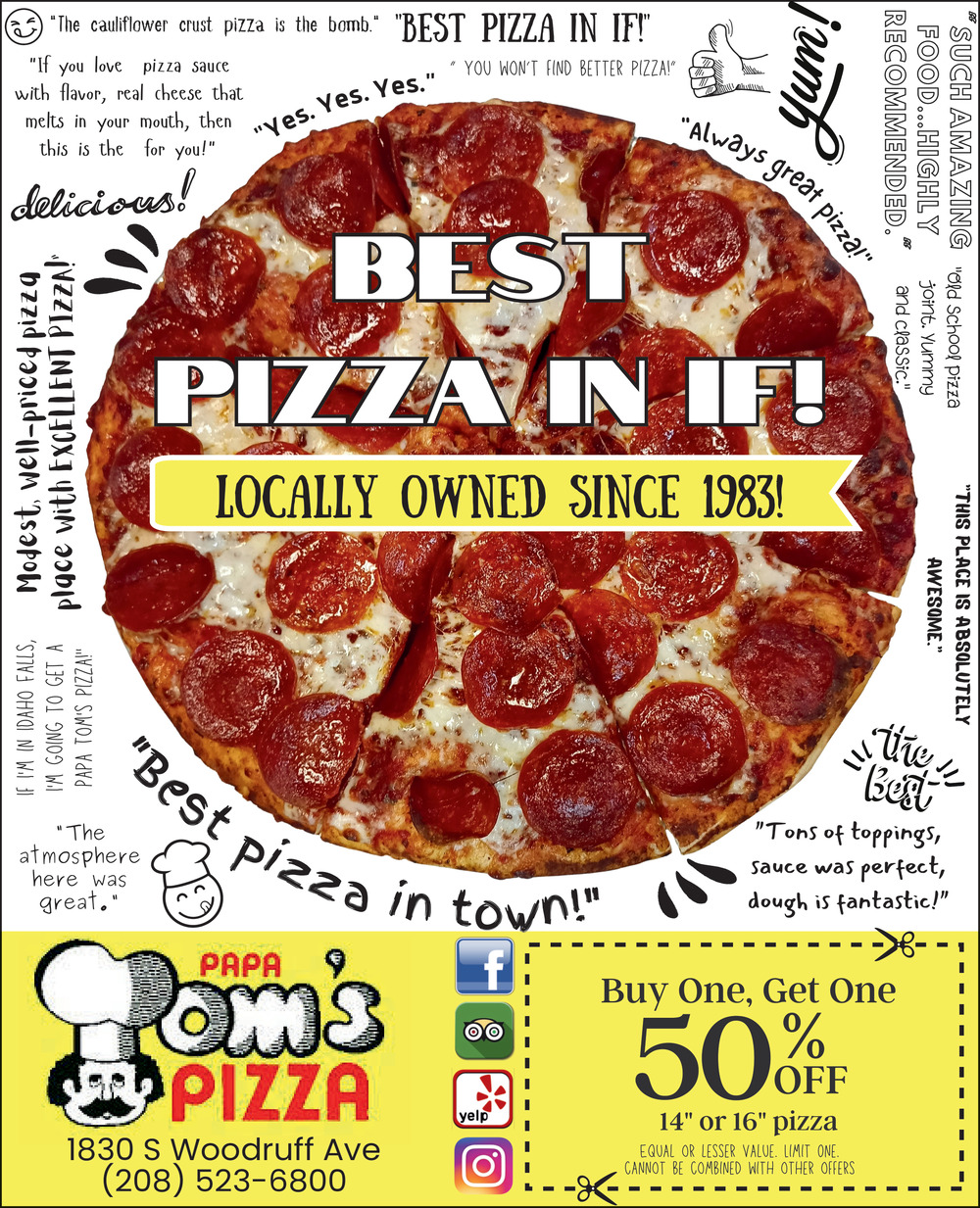Ads for Papa Tom's Pizza in Idaho Falls, ID