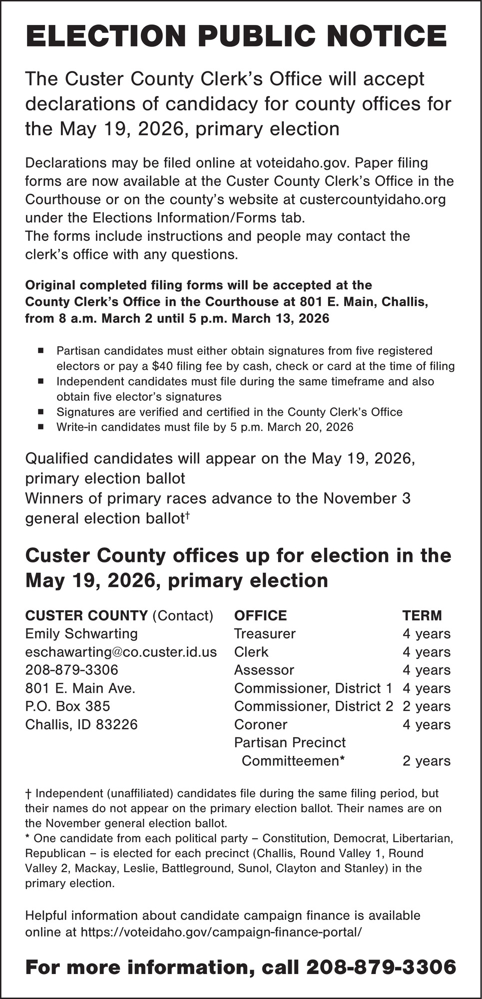 208-879-2360801 Main StChallis, ID 83226