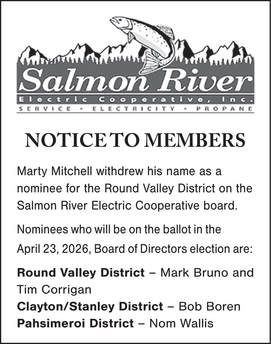 Mar 12, 2026. Salmon River Electric Notice Ads from Challis Messenger